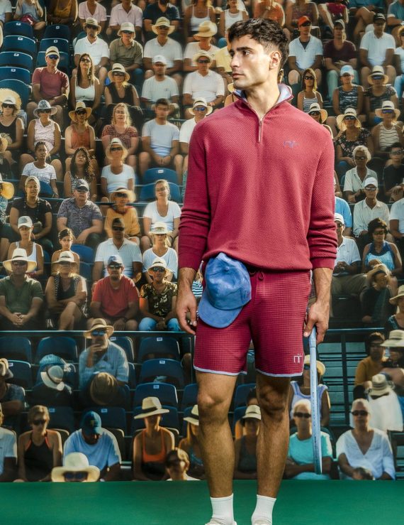 The Winner Knitted Short is the most playful yet intentional piece in the collection. Designed in a breathable textured knit with a relaxed fit, it’s all about freedom of movement and elevated ease. The deep maroon piping along the sides and hem adds a bold contrast like a quiet statement of focus and flair.